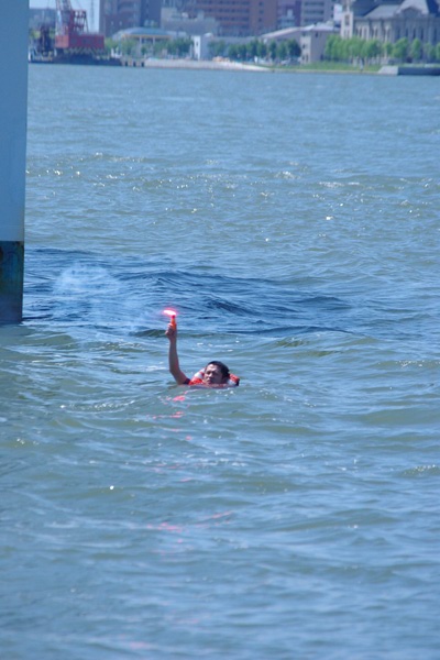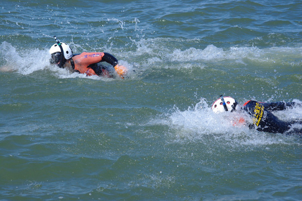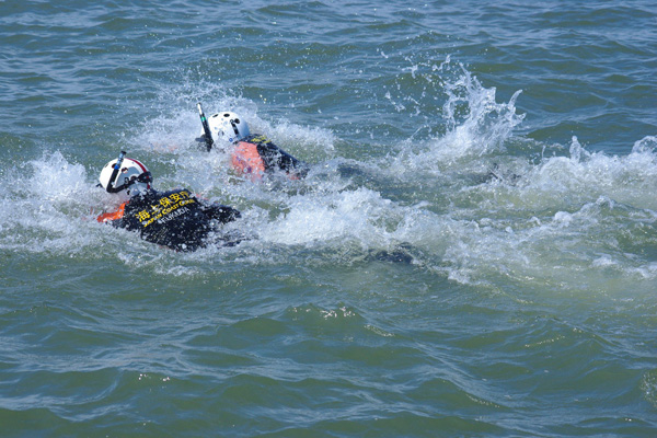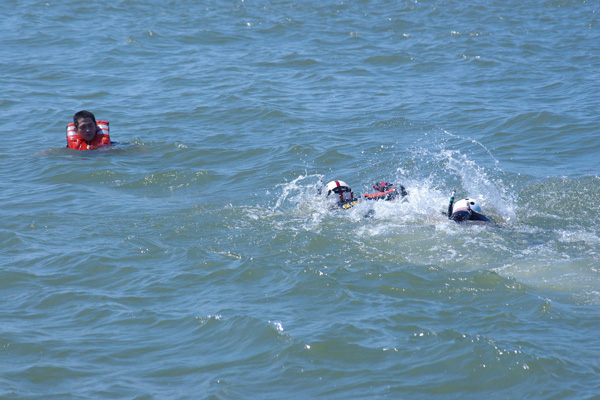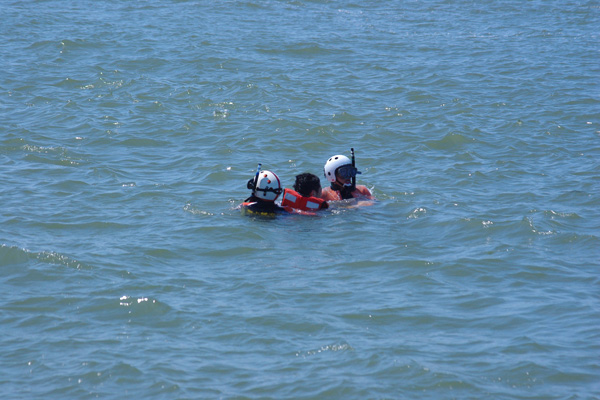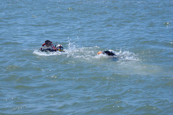 ・泳いで要救助者のところへ!