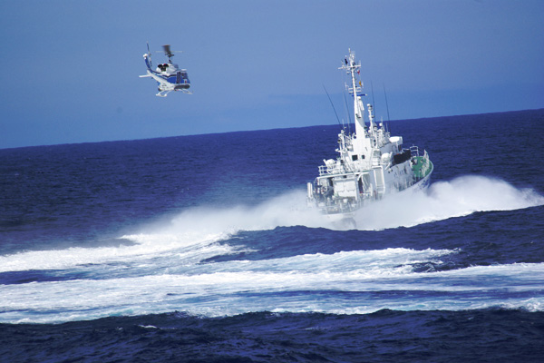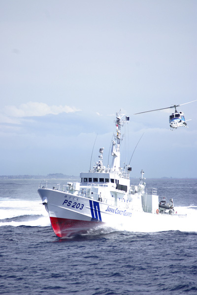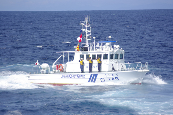 海をみていると搭載艇や巡視船艇が通り抜けていきます