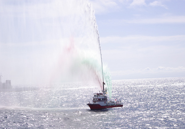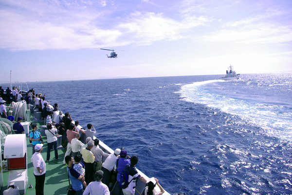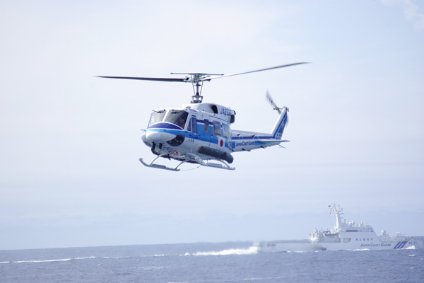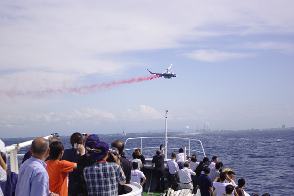 ローターから巻き上げる風で霧につつまれたような こしかぜ