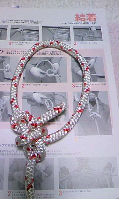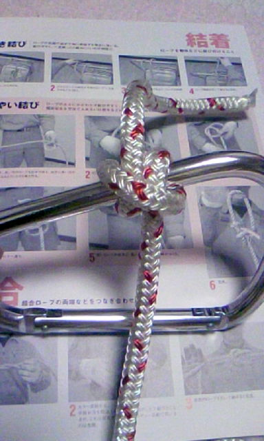余ったロープの処理がわからす雑誌の写真を見ながら
