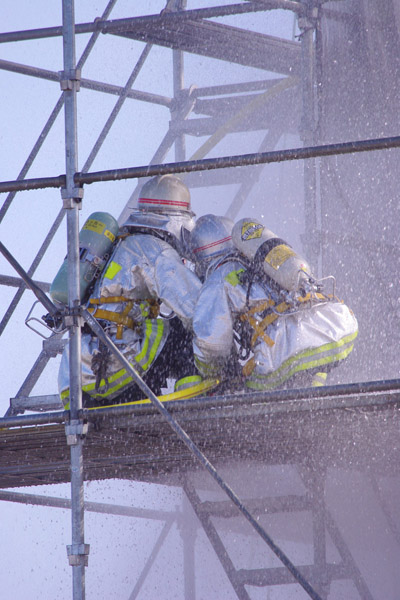 そういっていただけると土煙にも水霧にも巻き上げられた